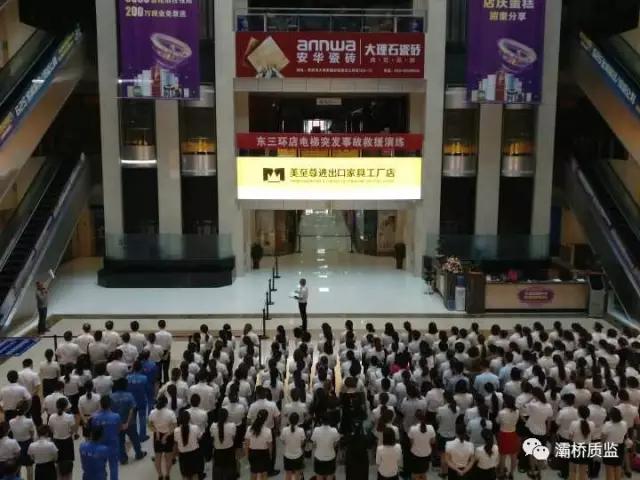 本次演练由质监灞桥分局、迅达(中国)电梯有限公司西安分公司和西安大明宫灞桥建材家居股份有限公司东三环店200多名员工共同参与。